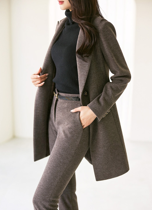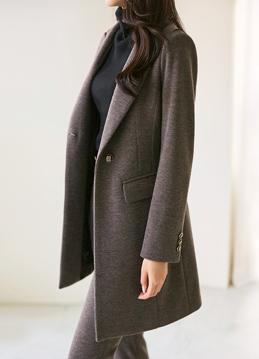 울이 블렌드 되어 더 가볍고 따스하게 입으실 수 있는 원버튼 롱코트에요