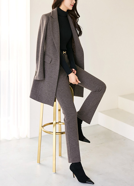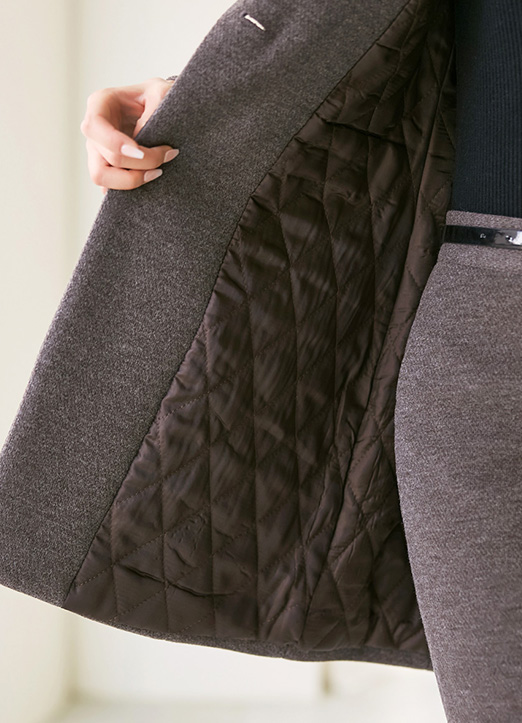 도톰한 두께감에 포근한 감촉을 주는 고급 울 블렌드 소재에