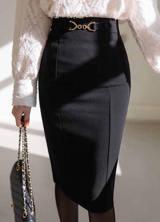 허리라인에 골드버클로 고급스러운 포인트를 주며