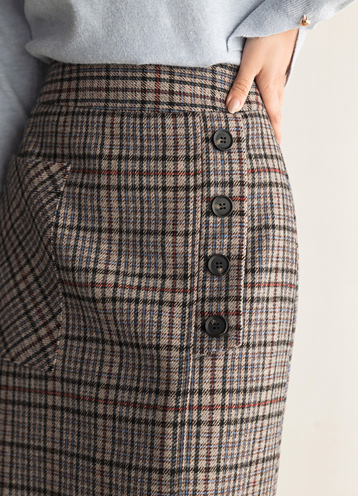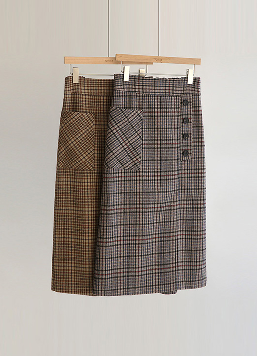 울이 혼방되어 배색컬러감의 체크패턴이 멋스러운 롱 스커트에요