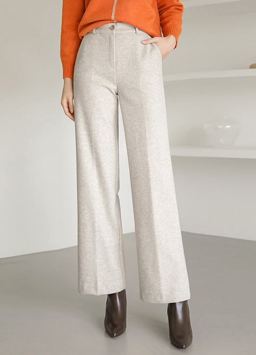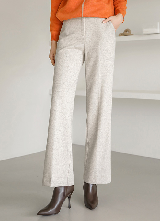 울이 혼방된 보카시 원단으로 톡톡하게 입어지는 슬랙스에요 :)