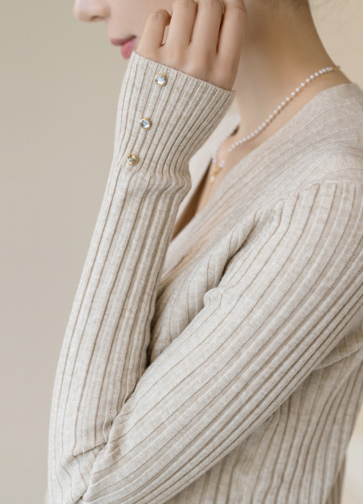 [Louis Angel] 珠串扣修身条纹开襟毛衫