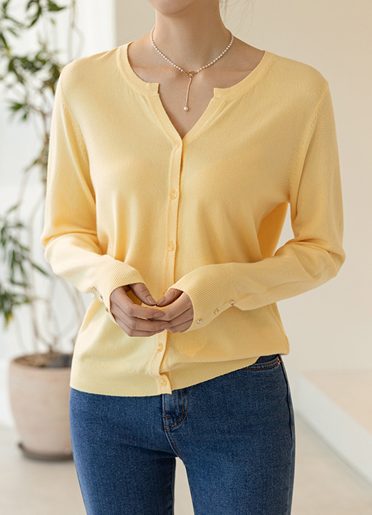 [Louis Angel] 袖口珠串装饰开襟毛衫