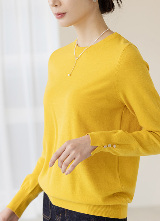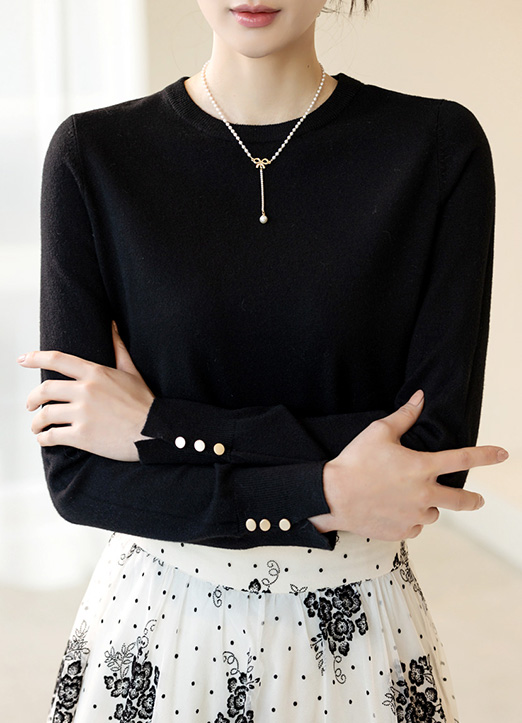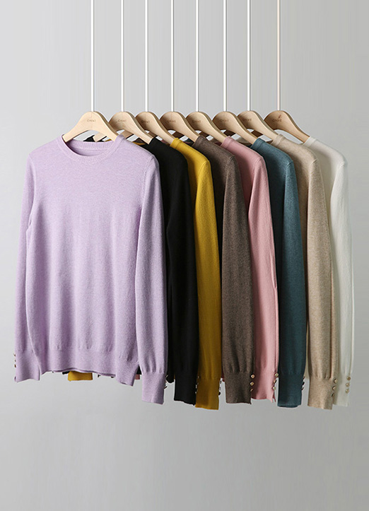 소매에 골드버튼으로 고급스러운 포인트를 준 만능 데일리 니트