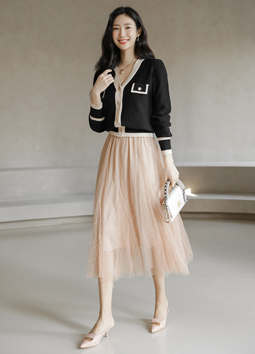 버튼을 전체 여밈하면 니트 블라우스 느낌까지 연출되어