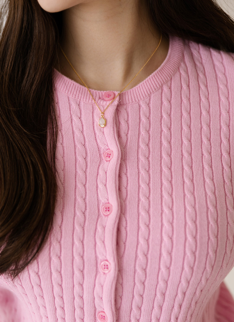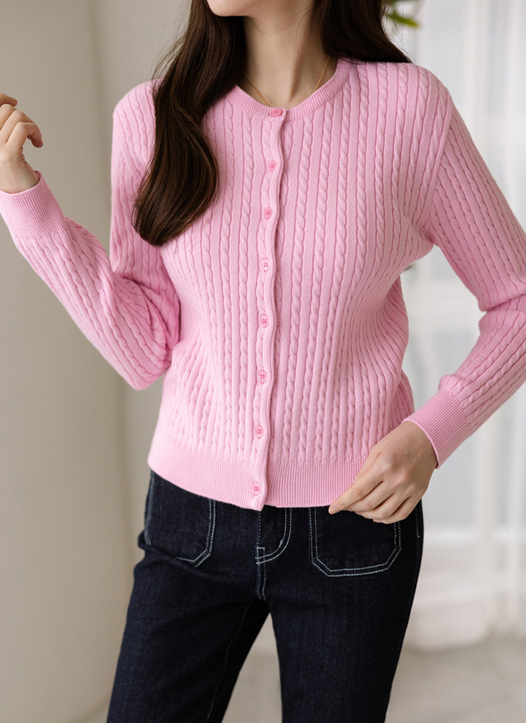 纯色麻花纹圆领针织开衫