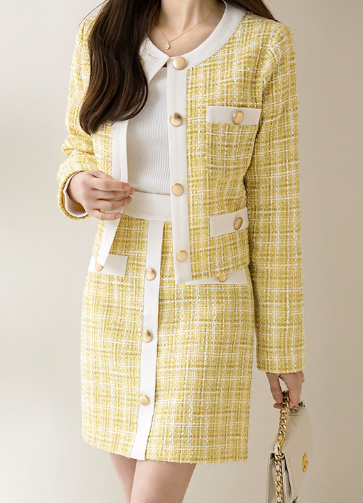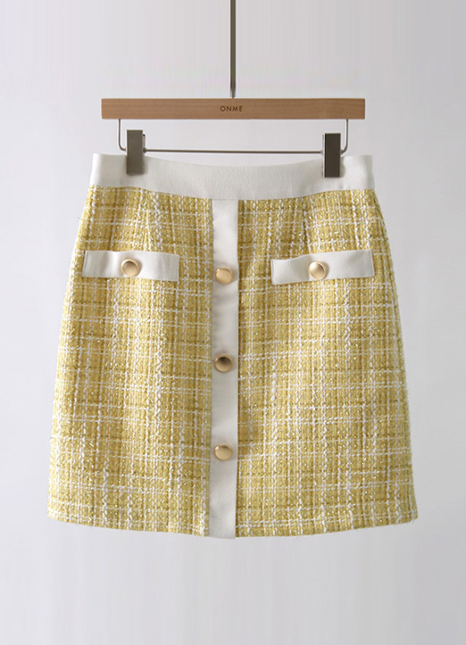 [Louis Angel] 黄金纽扣H线条粗花妮短裙