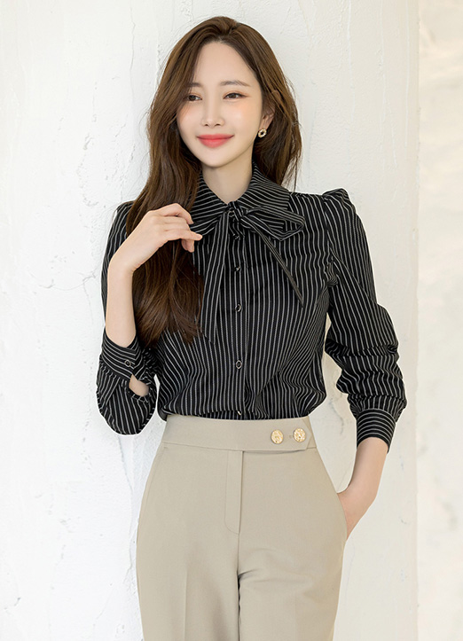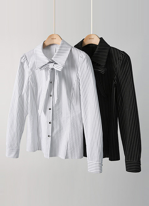 [Louis Angel] 时尚显瘦款条纹系带衬衫