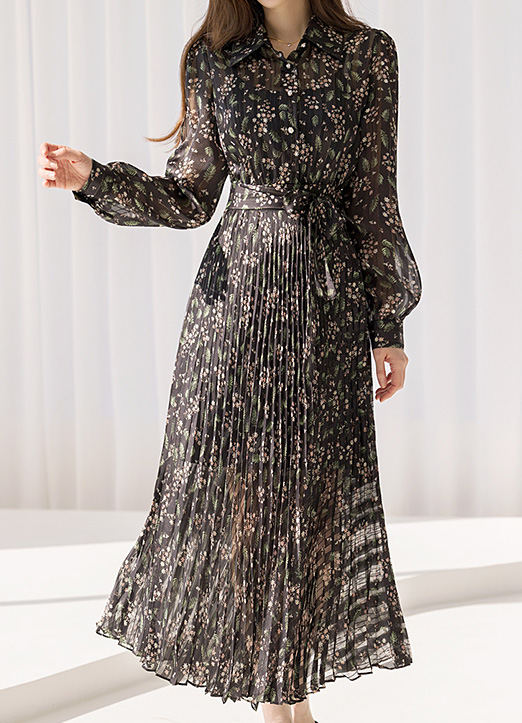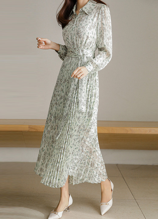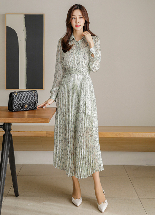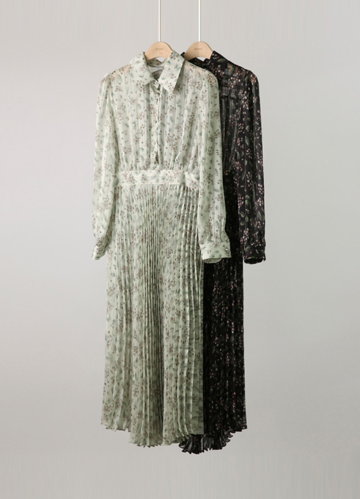 루이스엔젤 특.제 플라워 플리츠 롱 드레스에요