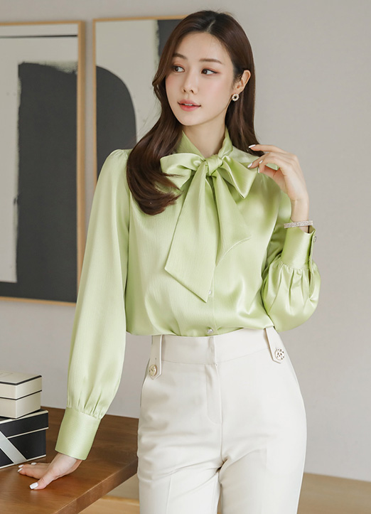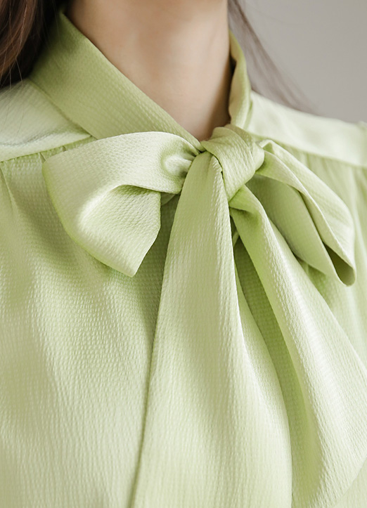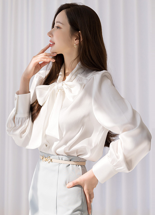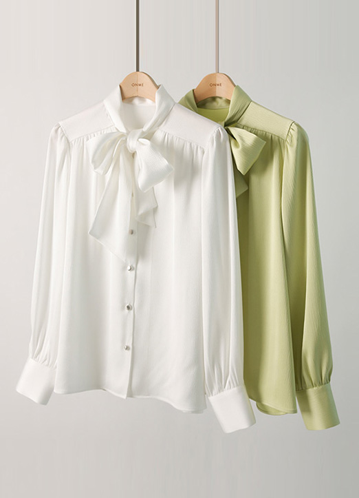 [Louis Angel] 隐约华丽缎面蝴蝶结系带衬衫