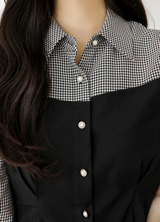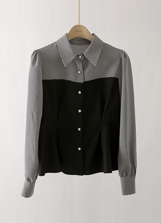 체크 배색으로 캐주얼한 무드가 묻어나는 루이스엔젤 특.제 블라우스에요 :)
