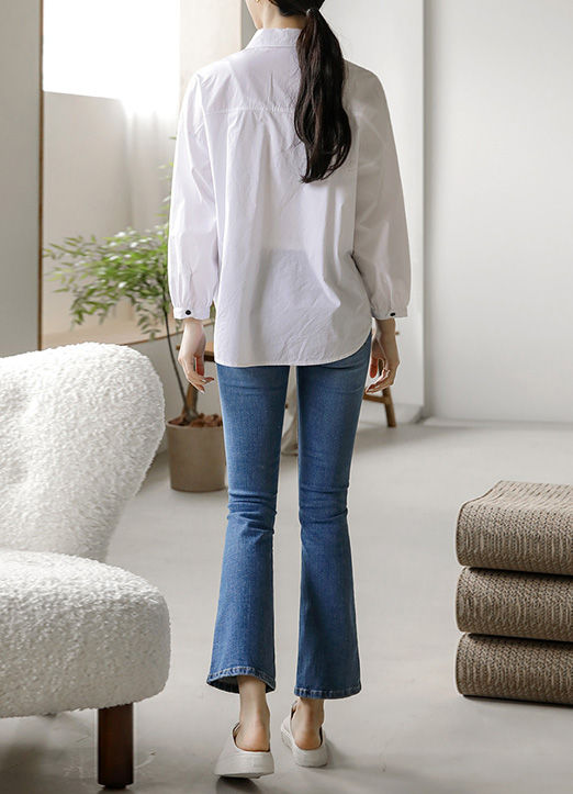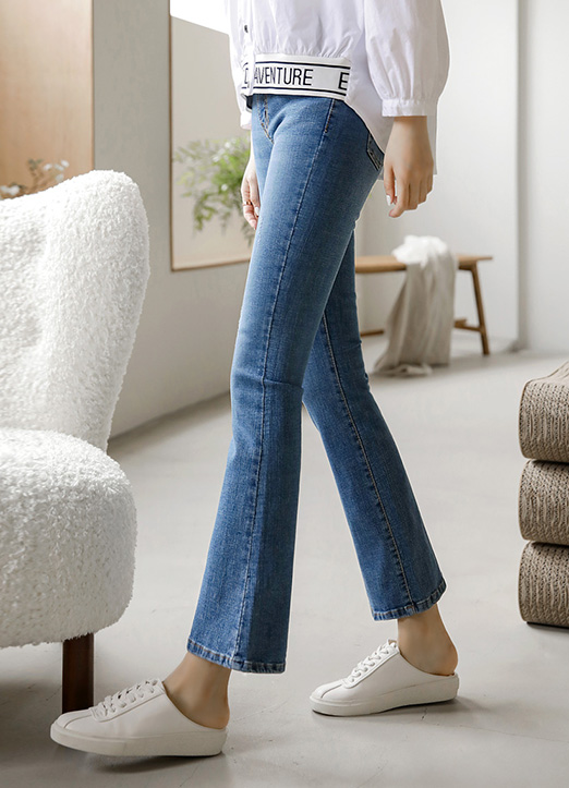 [自然遮盖小腿线条的半微喇,可轻松日常穿着的弹力牛仔裤 :) 到脚踝线条为止的基本长度,与任何场合都适合搭配的基本款。]
