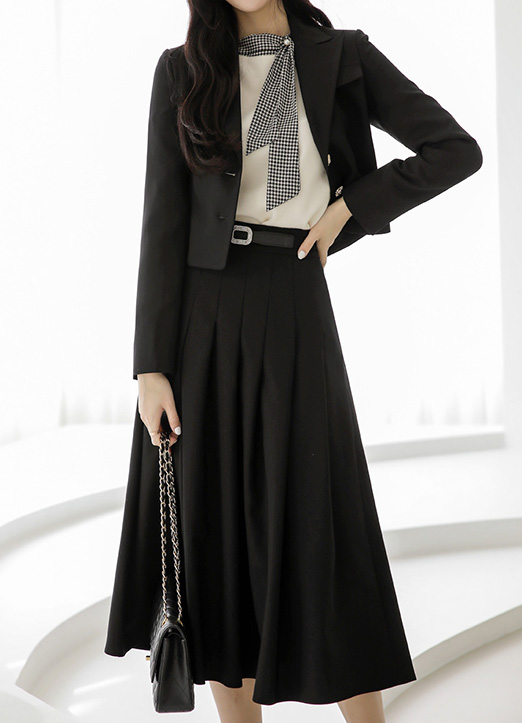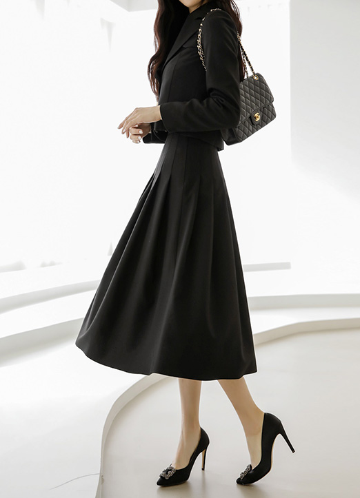 플리츠 패턴이 풍성한 플레어핏을 연출해주어요
