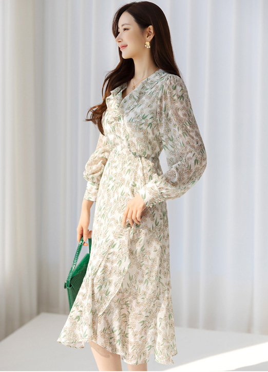 [Louis Angel] 亮片花纹荷叶边喇叭式连衣裙