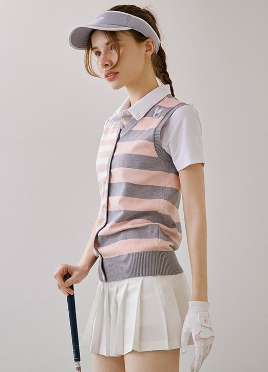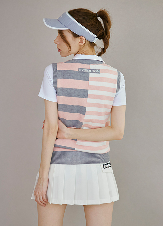 [QoG] 拼色条纹高尔夫针织背心_2color