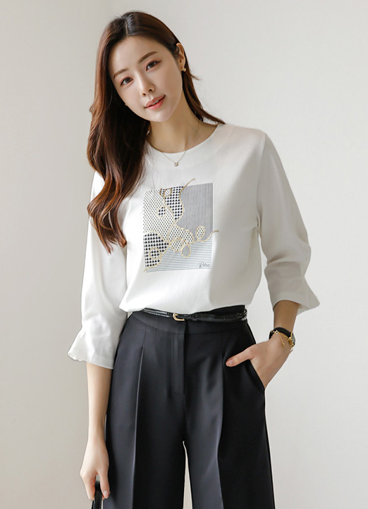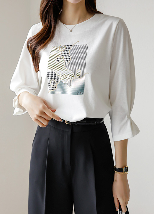 심플하면서 유니크하게 포인트되어 더 멋스러운 프린팅 티셔츠에요~