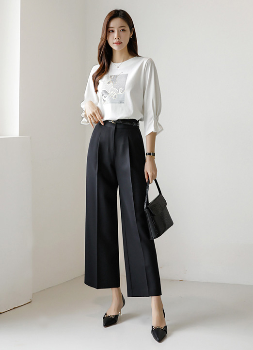 • 柔滑的触感和轻盈的重量感!背面的腰部松紧带,舒适的穿着感!一字型笔直垂下来的样式,稍微到脚踝上方的9分长度,可日常穿着,实惠满分!
