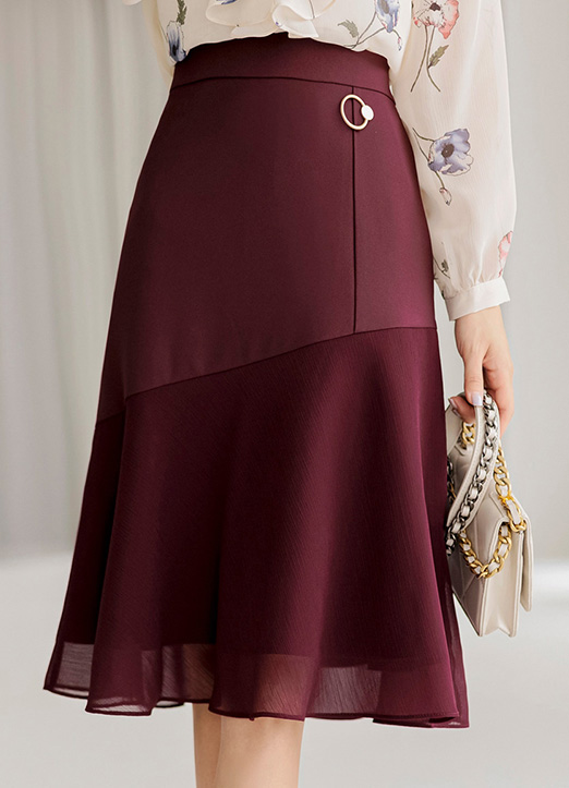 下摆双层雪纺配色喇叭中长裙