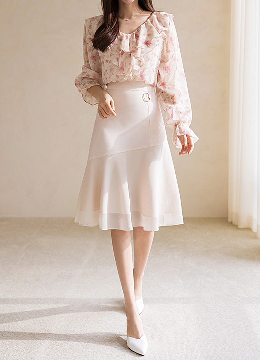 더 우아한 실루엣으로 즐기시기 좋은 미디 스커트에요~