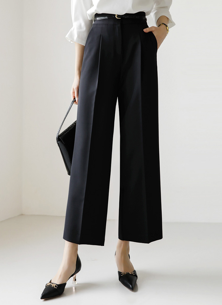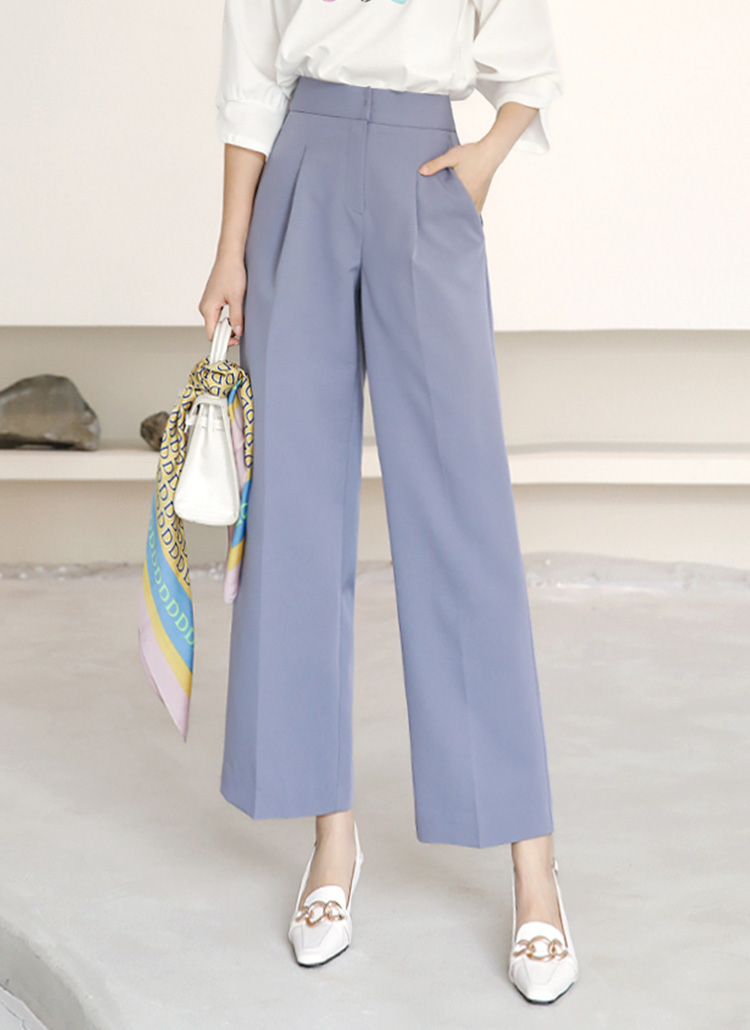 [柔滑的触感和轻盈的重量感!背面的腰部松紧带,舒适的穿着感!一字型笔直垂下来的样式,稍微到脚踝上方的9分长度,可日常穿着,实惠满分!]