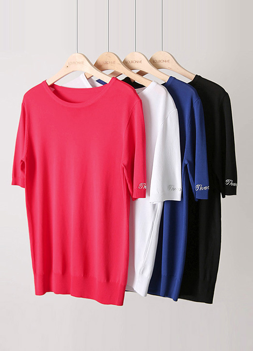 깔끔한 디자인에 소매 비즈레터링으로 화사한 포인트를 준 니트