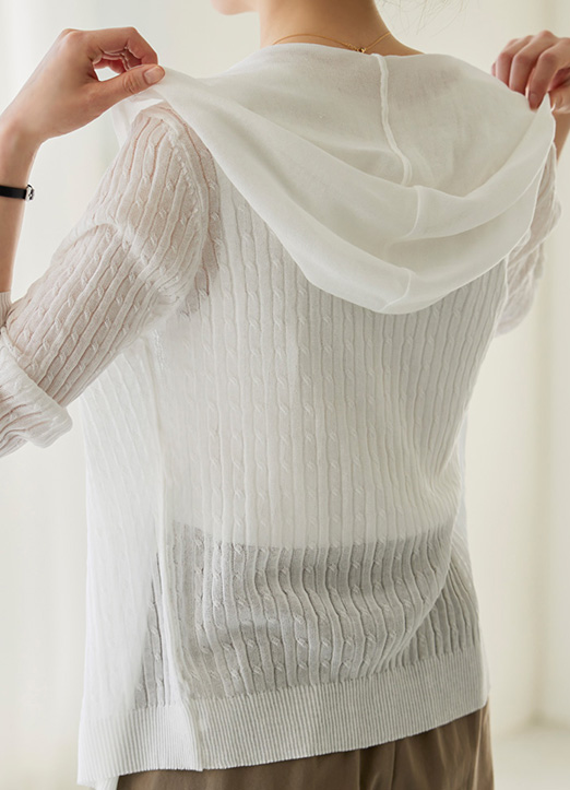 麻花纹连帽透视针织开衫