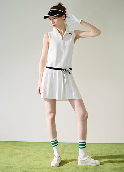 [QoG] 高尔夫无袖翻领腰部系带连衣裙_2color