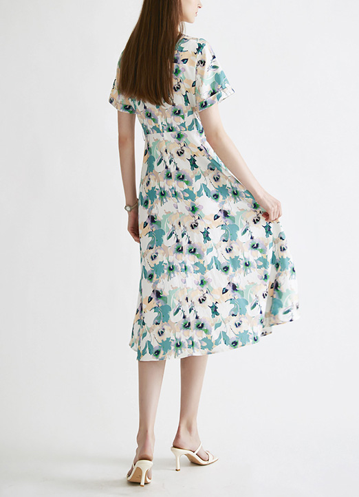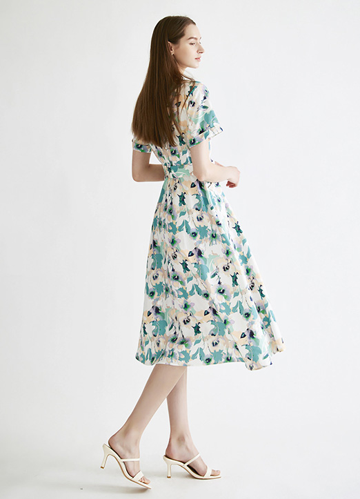[花朵散落在水面上的艺术花卉,与季节感完美融合的清爽氛围,穿着舒适又帅气,腰带是SET构成的,自然又给人舒适穿着感的连衣裙!]