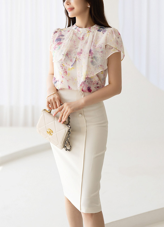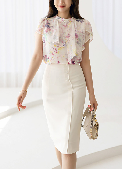 언발란스하게 들어간 절개라인이 마치 랩 스커트를 입은듯