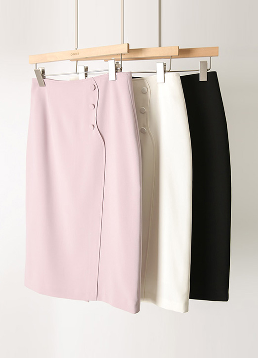 [不对称的开叉线条,展现干练风格的H型中长裙。沿着开叉线条搭配纽扣细节,增添了时尚的氛围~ 作为日常装、半正式装可轻松搭配!]