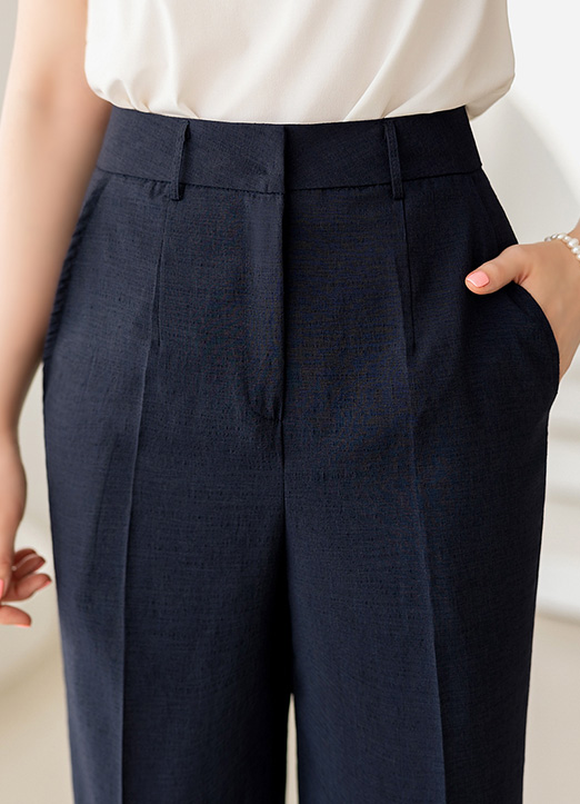 살짝 고시감이 있어 피부에 들러붙지 않는 시원한 린넨 라이크 소재의 팬츠에요