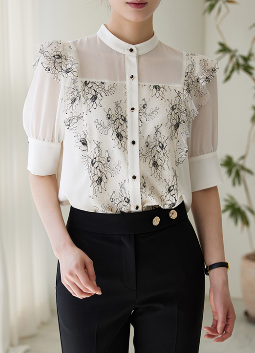 펄이 가미된 플라워 레이스로 화사하고 고급스러운 블라우스