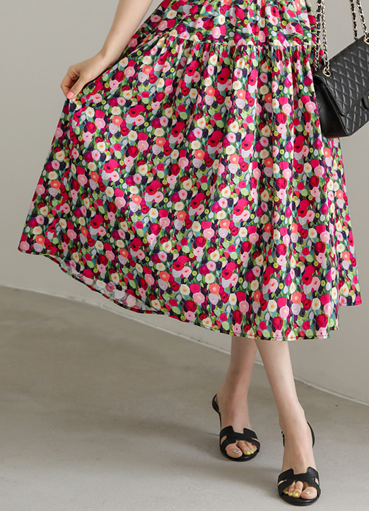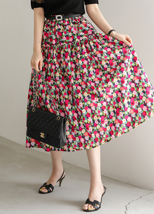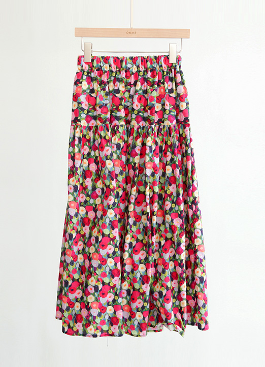 [用华丽鲜艳的樱桃粉色组合的花图案,活泼的点缀,丰盛的喇叭线条,是一款可爱的裙子:) 腰部线条整体松紧带,与尺寸没有太大拘束,穿着舒适。]