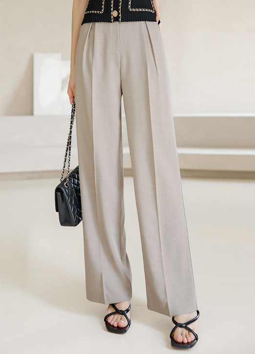 两侧细褶半阔腿宽松裤
