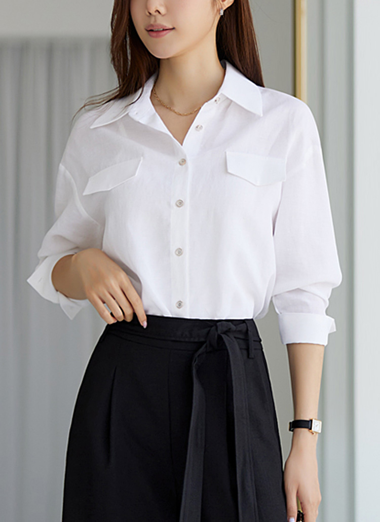 [Louis Angel] 柔软麻面料纯色翻领衬衫