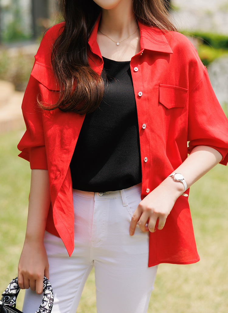 [人造丝混纺的亚麻材质,柔软且穿着凉爽的衬衫:) 以稍微宽松的版型,以夹克形式披上也好,根据不同的风格演绎出多样的氛围,更加有魅力。]