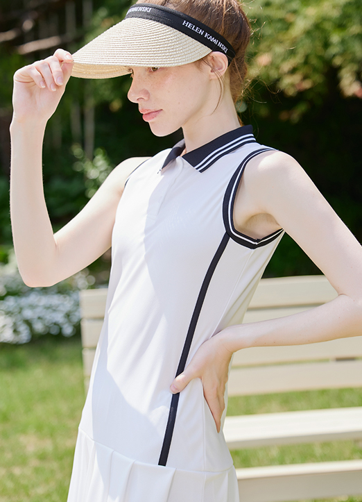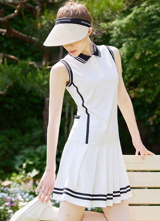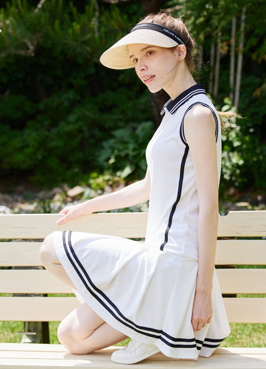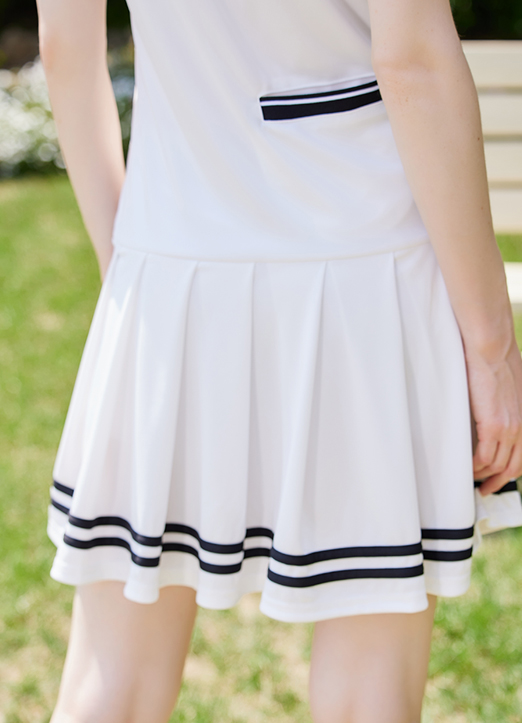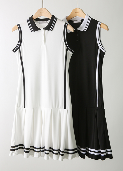 [QoG] 高尔夫配色领功能性弹力捏褶连衣裙_2color