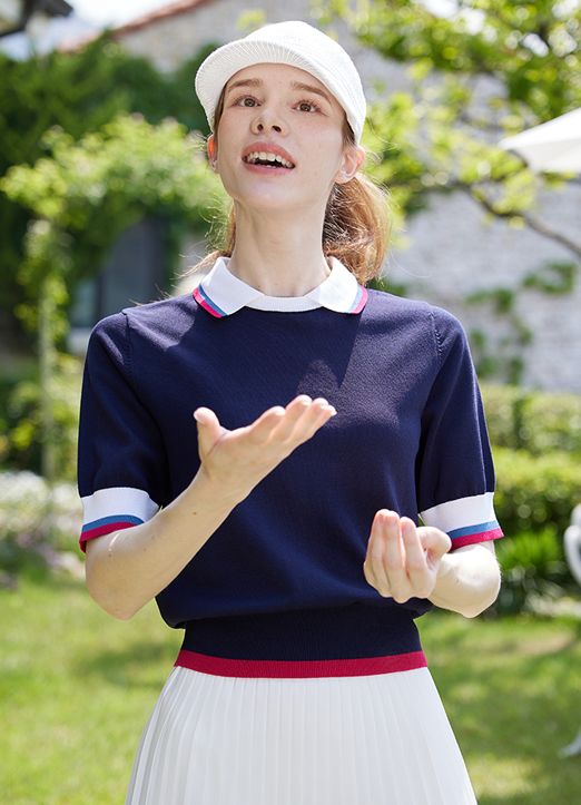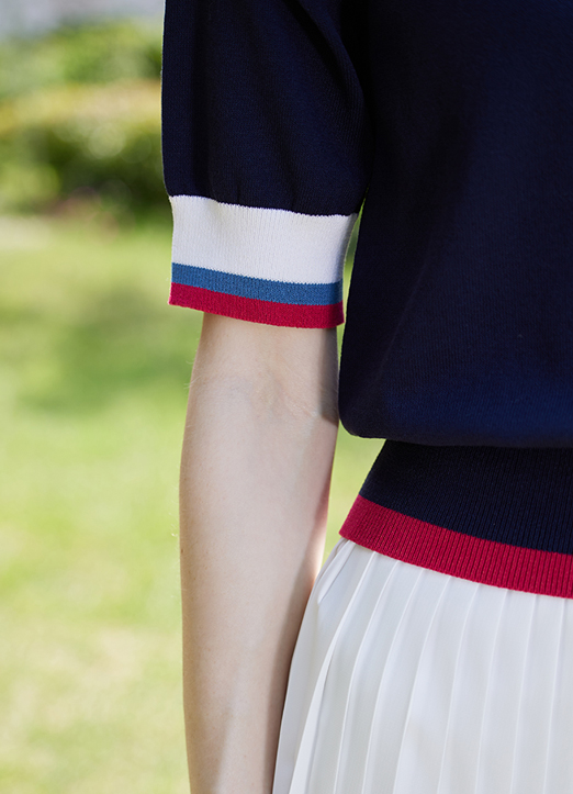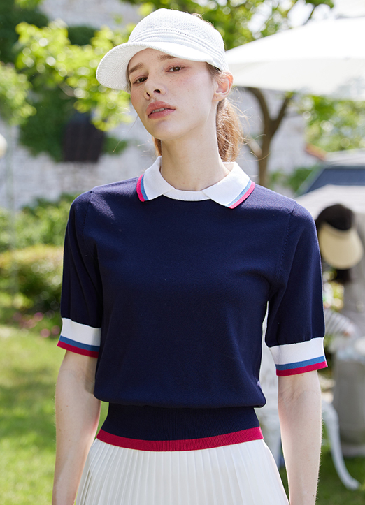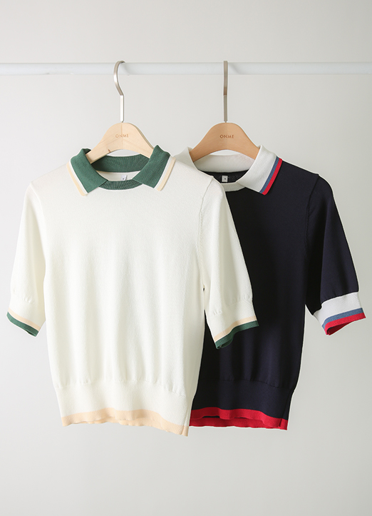 [QoG] 高尔夫拼色短袖针织衫_2color