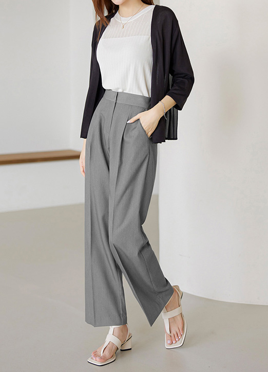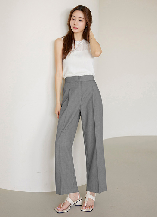 원핀턱 디테일로 깔끔하며 레그라인을 슬림하고 롱하게 연출해주고