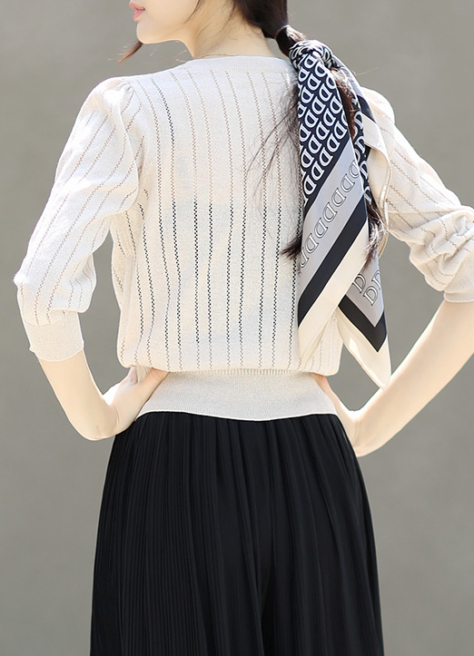 [加入了细腻的珠光纱的针织面料,柔软的触感~轻薄重量感! 透视部分的刺绣编织,成为凉爽的亮点,与季节感完美搭配的风格!]