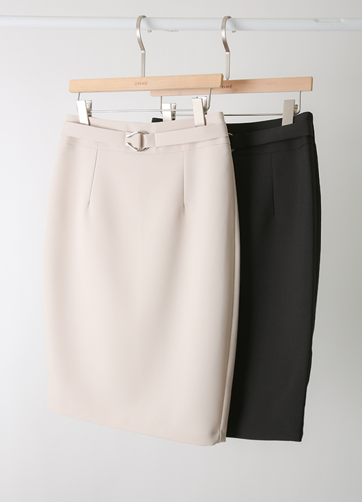 [Theonme] 扣环腰带基本款后开叉半身裙