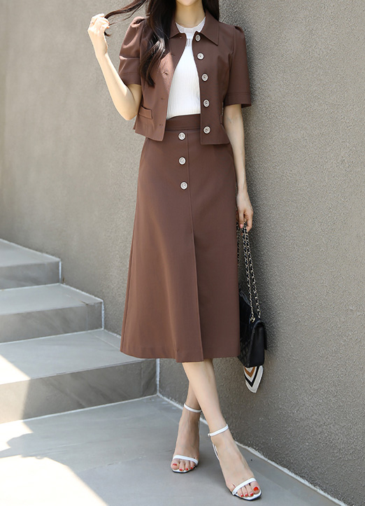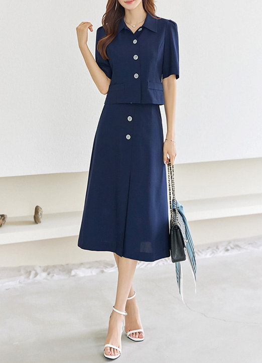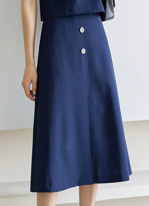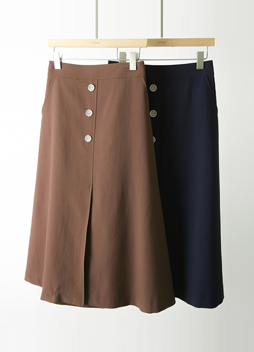 [Louis Angel] 前开叉纽扣L线条中长裙
