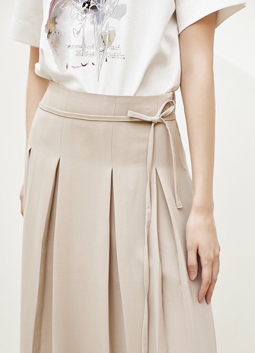 [Theonme] 腰部蝴蝶结系带捏褶长裙