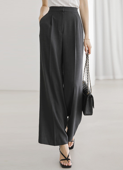 [以沉稳有氛围的色彩使用度Up! 半宽松范儿和前面添加了一个细褶细节,看起来不胖! 半高腰加上稍微盖住脚背的长款, 显得时髦可以感受到舒适的穿着感~]