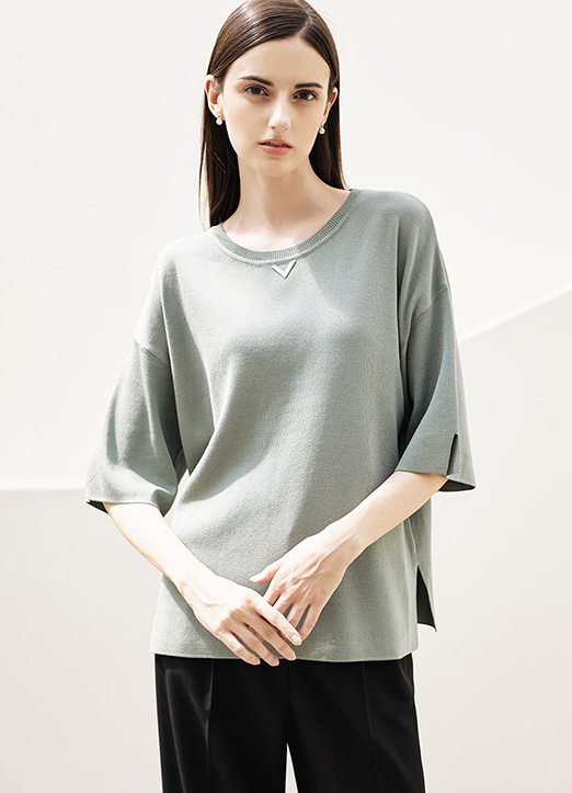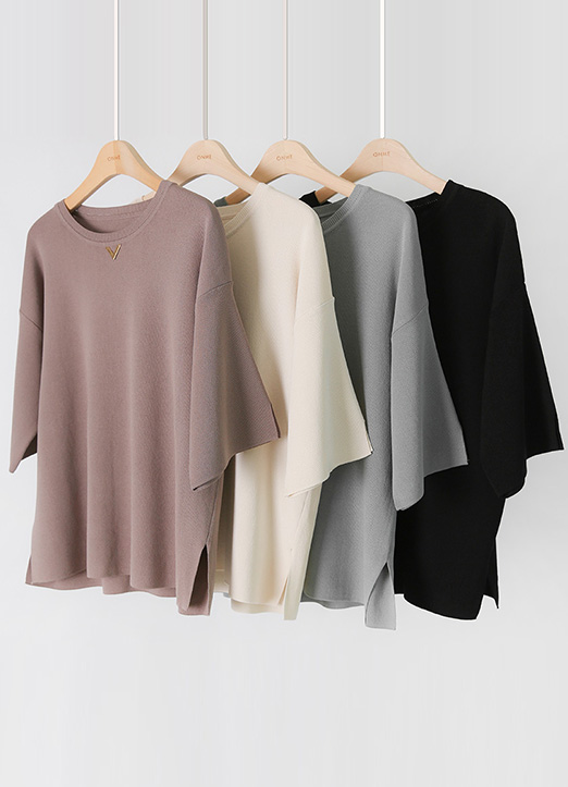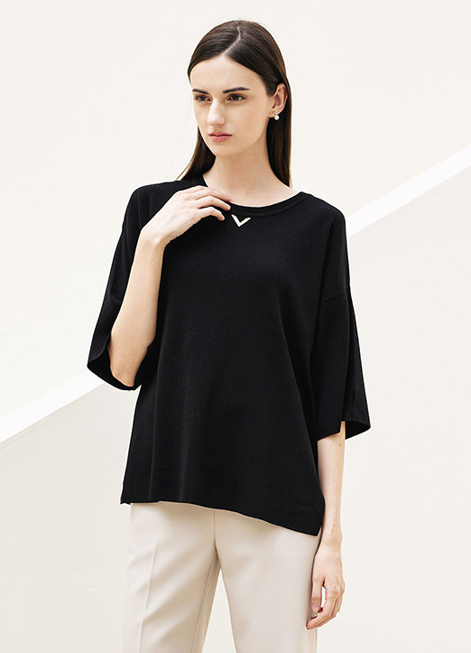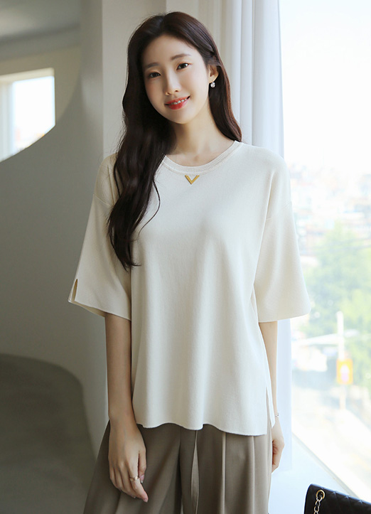 [Louis Angel] V装饰5分袖侧开叉针织T恤