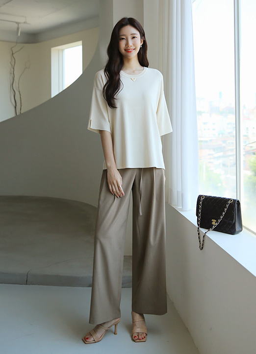 비스코스 혼방으로 부드럽게 흐르는 소재에요