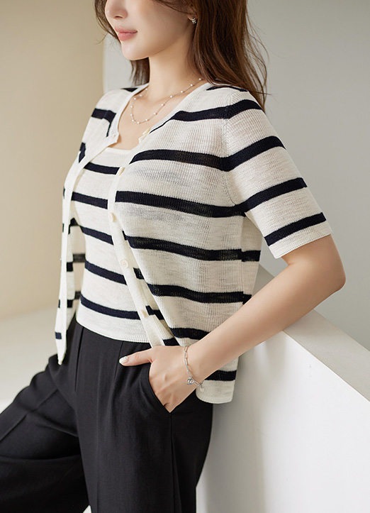 条纹吊带&短袖开衫2件套装