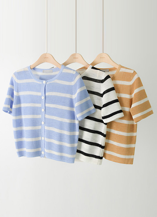 [条纹能感受到凉爽的情调,背心和开衫套装构成的活用度很高的单品:) 简洁的标准版,哪里都可以很好的搭配! ]
