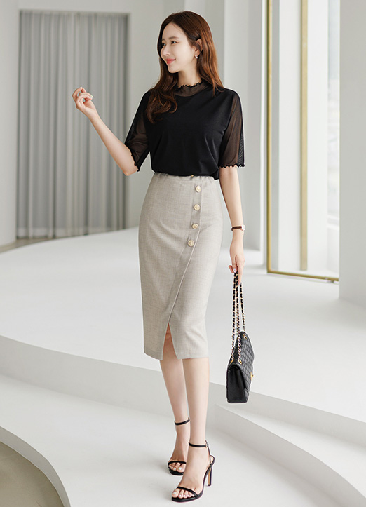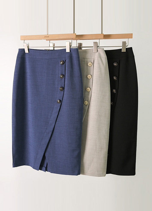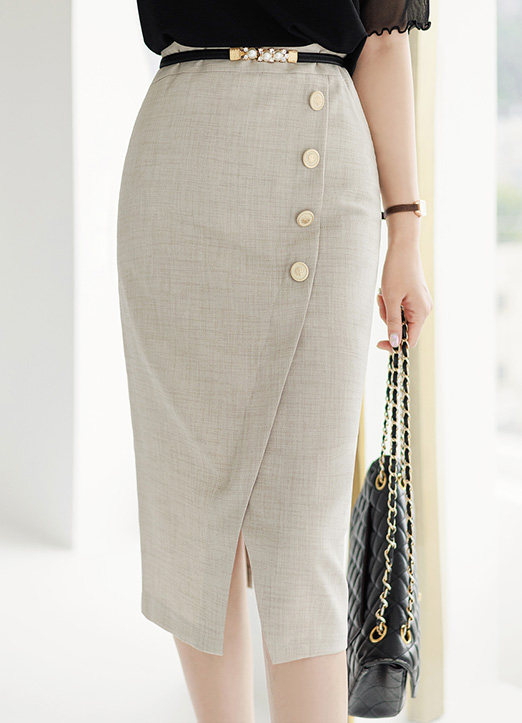 纽扣点缀裹身H版型半身裙