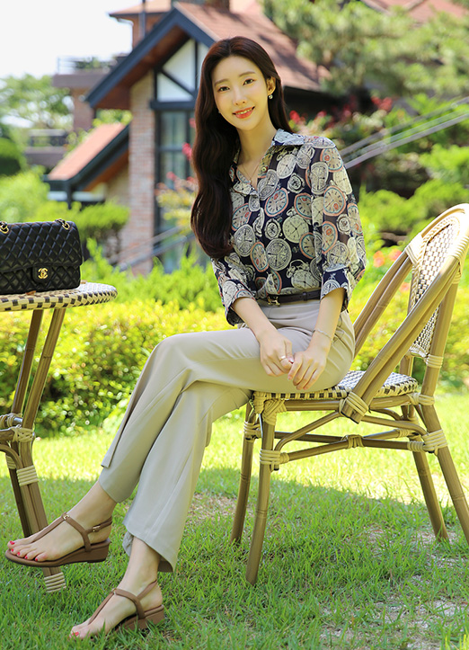 부드럽게 떨어지는 쉬폰 소재가 고급스러운 블라우스에요 :)